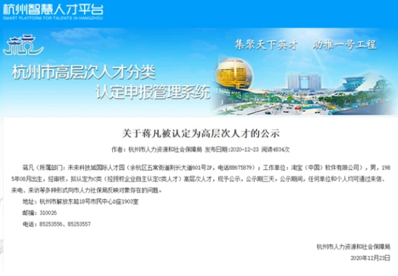 近日,淘宝天猫总裁蒋凡被认定为杭州高层次人才,引起网络热议。公示发布后,有网友称其投诉蒋凡不符合通知中“申请人应模范遵守法律法规、道德标准、...