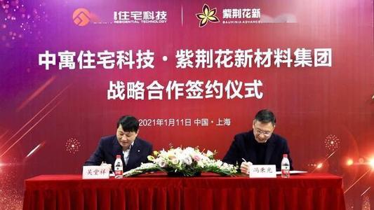 2021年1月11日上午,紫荆花新材料集团、上海中寓住宅科技集团在上海中寓运营总部基地举行战略合作签约仪式。紫荆花新材料集团联席总裁冯秉光先...