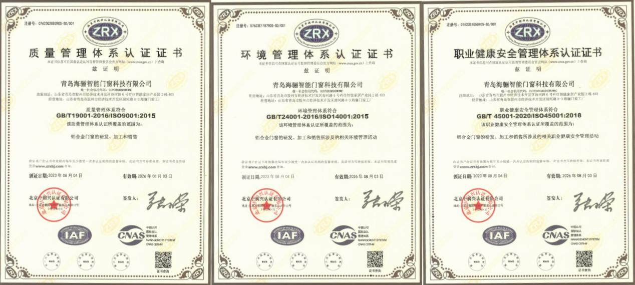 据了解,近日,经国家权威机构的认证与审核,海骊门窗顺利通过ISO9001质量管理体系认证、ISO14001环境管理体系认证、ISO450...