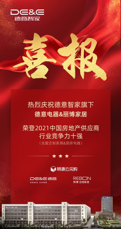 据最新消息报道,2月24日,德意智家携旗下子公司德意电器和丽博家居出现在第六届地产供应链行业评选榜单发布仪式上,分别荣誉入围“2021中...